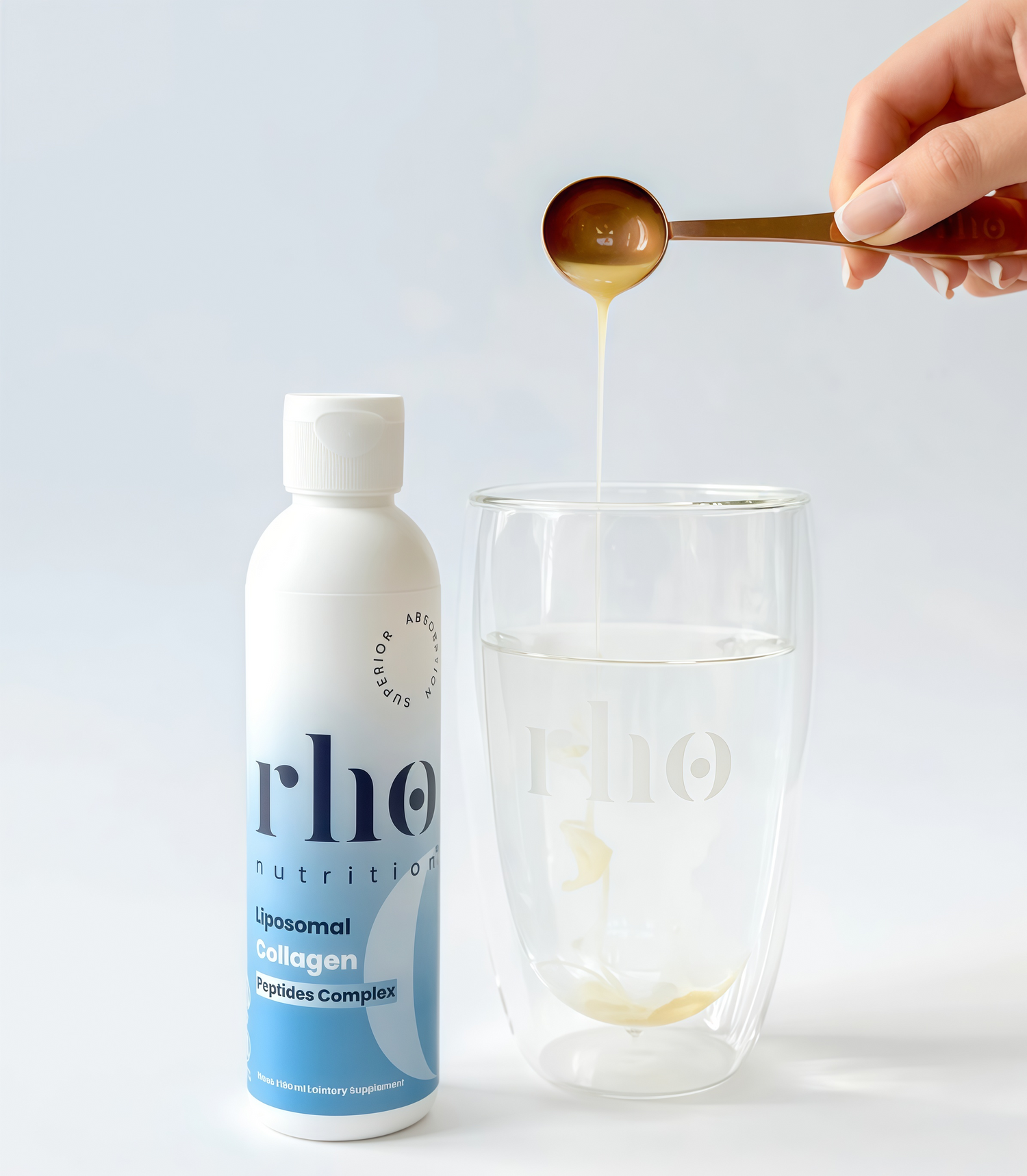I add Liposomal Collagen Peptides to my morning glass of spring water to nourish my skin and supportjoint health. This qives me a radiant glow and flexible movement throughout the day.