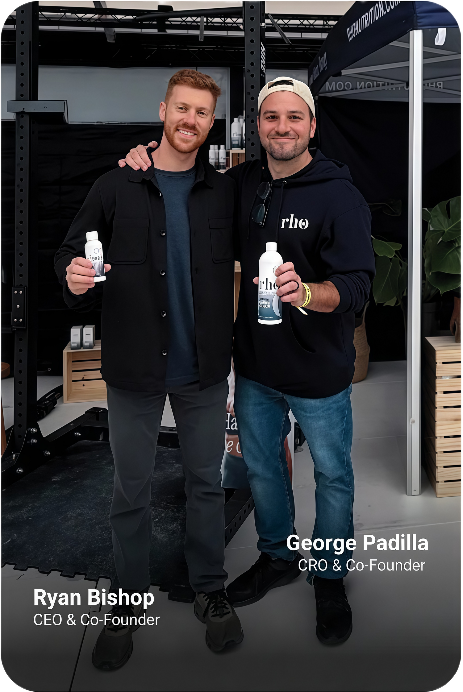 Driven to make a difference,l partnered with my colleagueGeorge,industry experts and award-winning PhDs toestablish Rho- a brandrooted in trust, innovation, andgenuine welness. Together, we spentcountless hourscrafting products we'd trust for our own families.