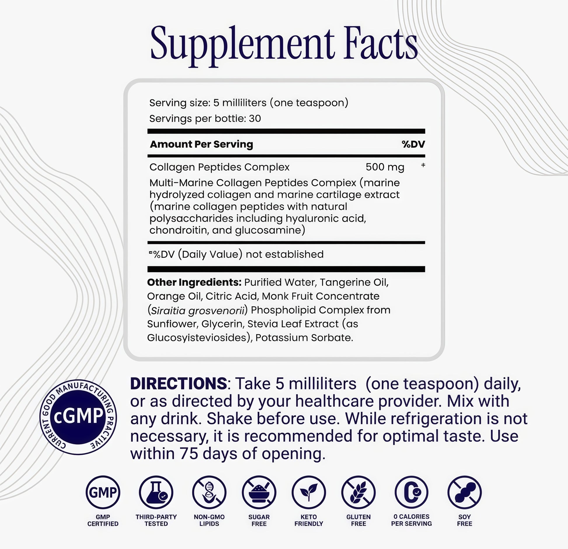 In a double-blind, placebo-controlled human study, participants taking this Type ll Marine Collagenexperienced a 20% reduction in wrinkle appearance over 90 days, particularly in frown lines and crow'sfeet areas.
