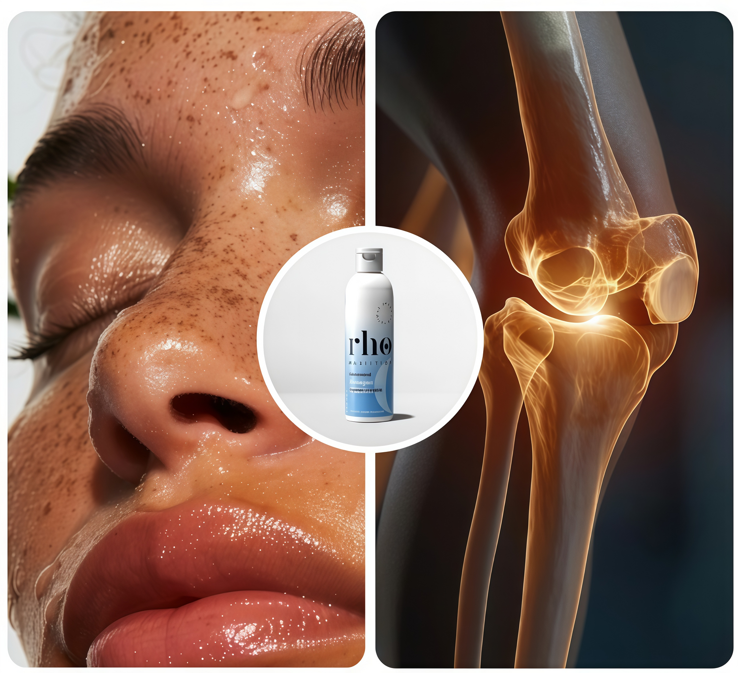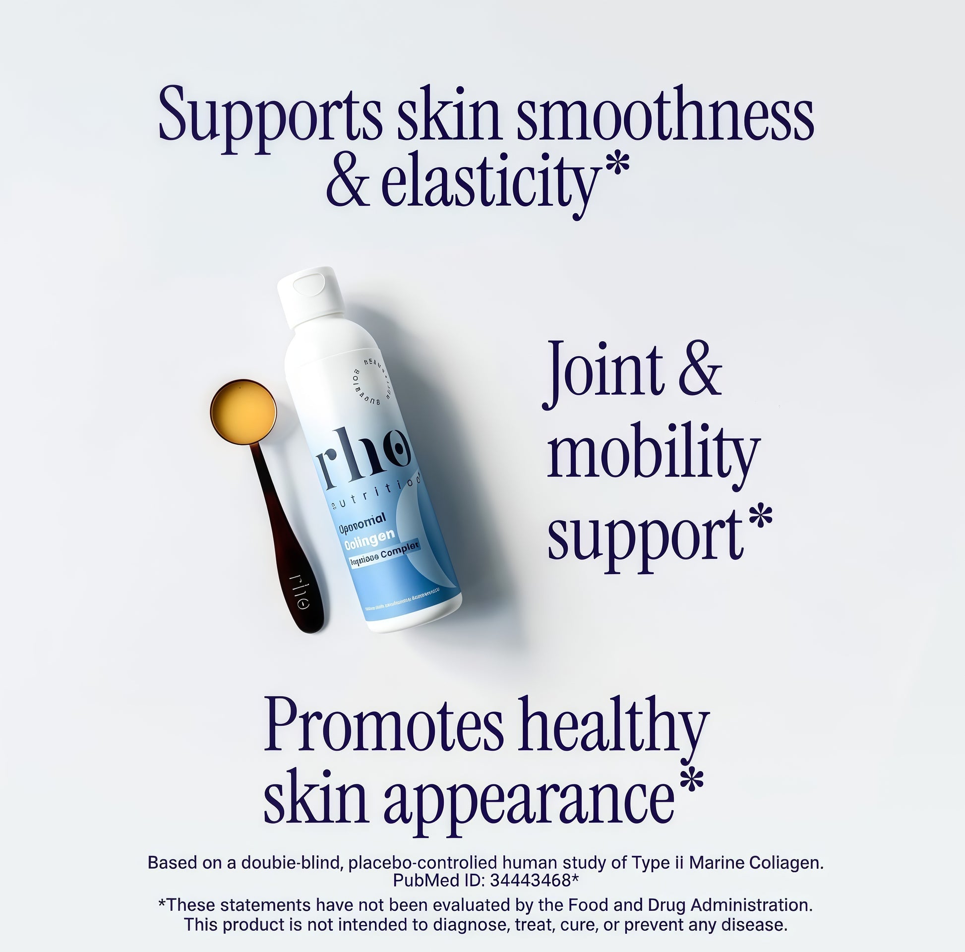 Rho Liposomal Collagen Peptides feature Cartidyss®, a clinically studied Type llMarine Collagen sourced from Normandy, France, known for its high bioavailabilityand quality. This advanced formula helps support healthy skin elasticity, jointmobility, and connective tissue function helping you feel strong, resilient, andyouthful.*